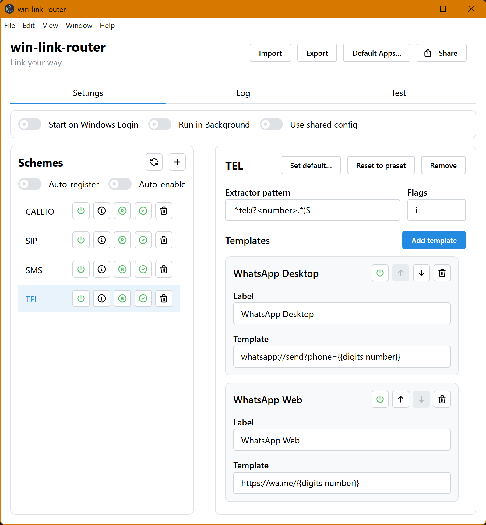 win-link-router is configured per scheme (protocol):